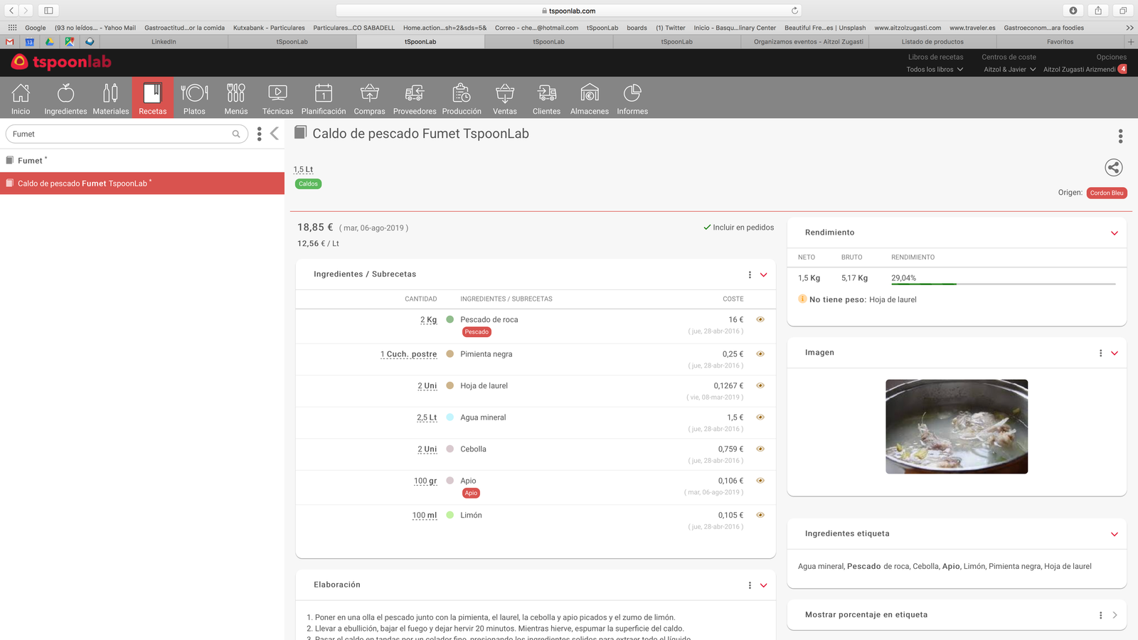 Trabajamos con el software Tspoonlab donde podemos gestionar lo comentado anteriormente, así como  planificar los menús, ingeniería de menús y un largo etcétera de gestiones para que te faciliten el día a día.