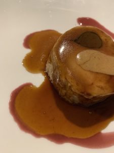 Royal de pintada, avellanas y salsa de hipocrás